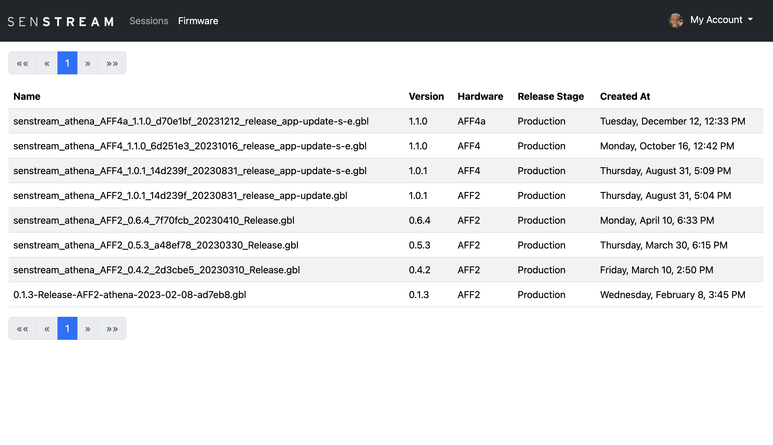 Selecting Firmware in the top navigation, you will be able to see which different versions of firmware on Research Rings have been used to record data in the system.